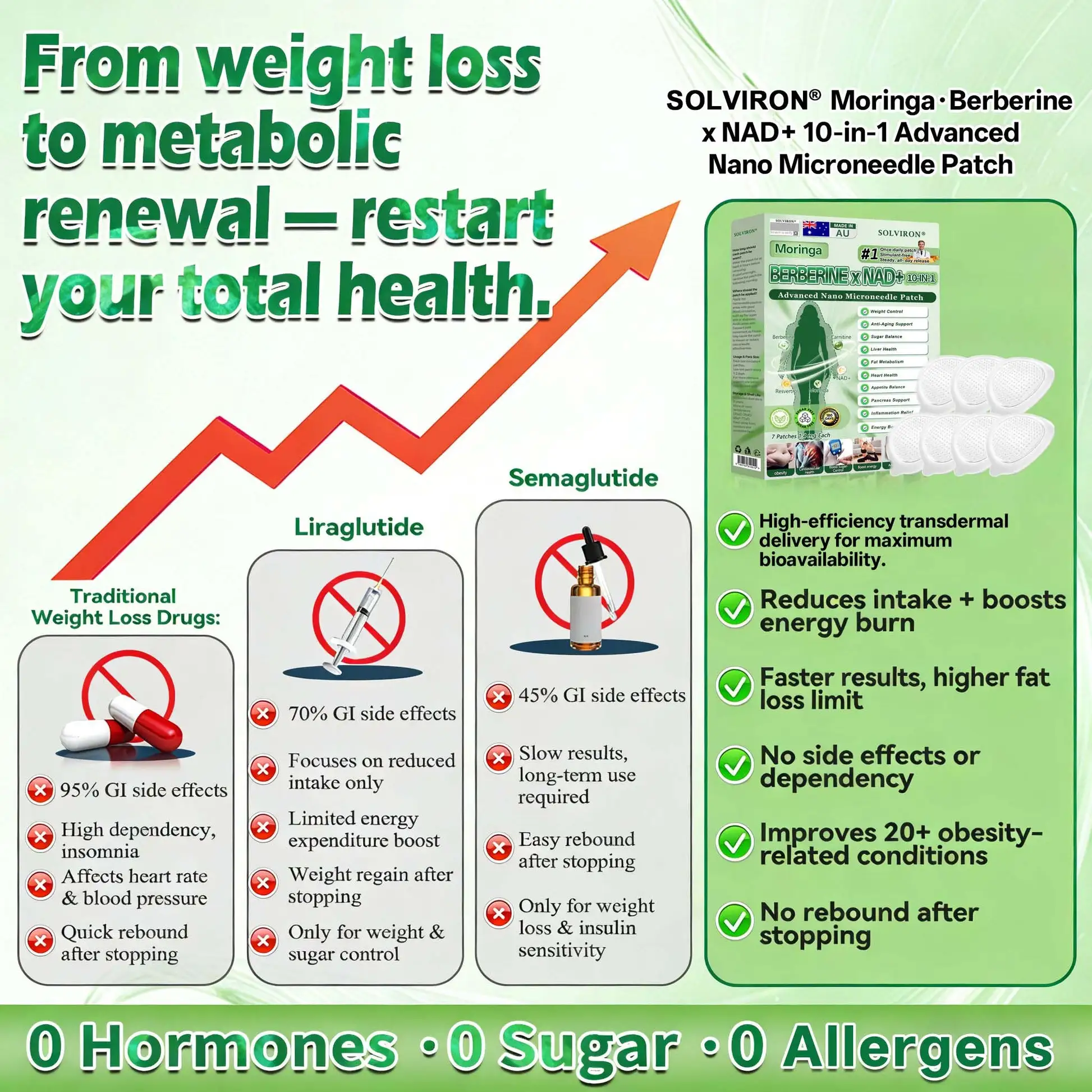 ๐๐๐๐๐๐ฅ๐ข๐กยฎ ๐๐จ๐ซ๐ข๐ง๐ ๐ ๐๐๐ซ๐๐๐ซ๐ข๐ง๐ ร ๐๐๐โบ ๐๐-๐ข๐ง-๐ ๐จ๐ ๐๐๐๐๐๐ ๐๐๐ง๐จ ๐ด๐๐๐๐๐๐๐๐ ๐๐ ๐๐๐ญ๐๐ก ย was developed through more than 20 years of research by a multidisciplinary team of over 30 experts. Each patch incorporates an ultra-fine microneedle architecture measuring approximately one-seventh the thickness of a human hair, designed to ensure a smooth and virtually painless application. The formulation contains highly concentrated natural bioactive compounds, up to 20-fold higher than conventional market levels, including Moringa and Berberine, which act synergistically to support healthy glycemic responses, appetite regulation, and lipid metabolism, thereby promoting gradual and sustainable weight management. Enriched with NADโบ, the patch further supports skin firmness and structural resilience during body-weight fluctuations, helping maintain a lean appearance without compromising comfort or aesthetics. Additional high-efficacy components contribute to the support of immune function, digestive health, gut balance, womenโs health, daily energy levels, and fatigue reduction, collectively promoting a more youthful and resilient physiological state from within. Manufactured inย ย facilities that comply with both Australia and EU quality standards, this needle-free, science-driven solution provides a safe and comprehensive approach to effective weight management and long-term metabolic health, designed to work in harmony with the body rather than against it.