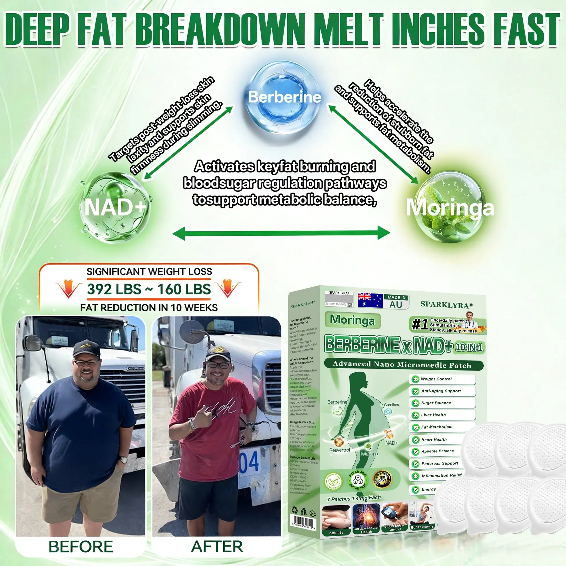 โ ๐๐๐๐๐๐ฅ๐ข๐กยฎ ๐๐จ๐ซ๐ข๐ง๐ ๐ ๐๐๐ซ๐๐๐ซ๐ข๐ง๐ ร ๐๐๐โบ ๐๐-๐ข๐ง-๐ ๐จ๐ ๐๐๐๐๐๐ ๐๐๐ง๐จ ๐ด๐๐๐๐๐๐๐๐ ๐๐ ๐๐๐ญ๐๐ก breaking away from the burden of traditional injectable or oral weight-loss products, this advanced nano microneedle transdermal delivery system gently and steadily releases active ingredients for up to 8 hours. Core ingredients Moringa and Berberine work synergistically to support appetite management and lipid metabolism, making fat loss feel more natural and effortlessโwithout extreme dieting or physical strain. At the same time, NADโบ supports cellular energy levels and skin firmness, helping maintain a healthy, well-toned appearance during body-weight changes. The overall formula is gentle and stable, offering a more comfortable experience for those seeking an effective, non-irritating, and non-injectable approach to weight management.